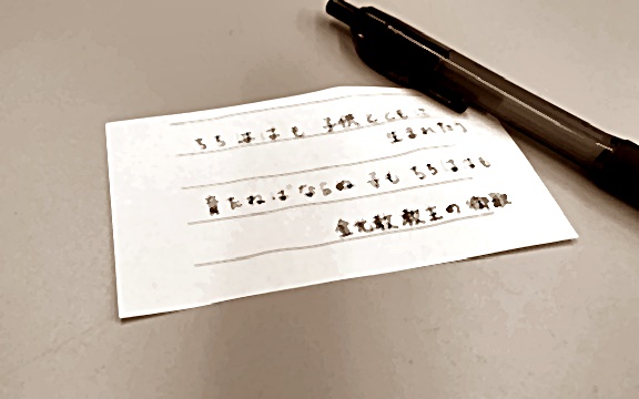「子どもが幼い間は、世間のことわざのように『はえば立て、立てば歩めの親心』で、ああもしてやろう、こうもしてやろうと、親は心を配って、しつけもし、育てもします。たとえ、子どもがうるさがっても、文句を言っても、立派な人間になってほしいと願って、それが少しも苦になりません。親ばかというか、不思議なものです。ところが、子どもが大きくなってきますと、親として、苦になることが増えて、時には、腹の立つことさえあります。これほど、この子のためを思うてやっているのにと…。今のあなたには、お分かりにならないかも知れませんが、子どもを育てることが苦になってきたら、一度、育てることをやめて、親とは何か、考えてみられるといいですよ。私は、息子のことで失敗しました。遅まきながら、今、親としての私を反省しています。そうして、息子が本当に立ち行くことを願っているのです」と、Sさんは、にこにこしながら、手作りのカードを品物に添えてお客さんに渡すのだということです。そのカードには、ペンで「ちちははも 子供とともに 生まれたり 育たねばならぬ 子もちちははも 金光教教主の御歌」と書いてあります。